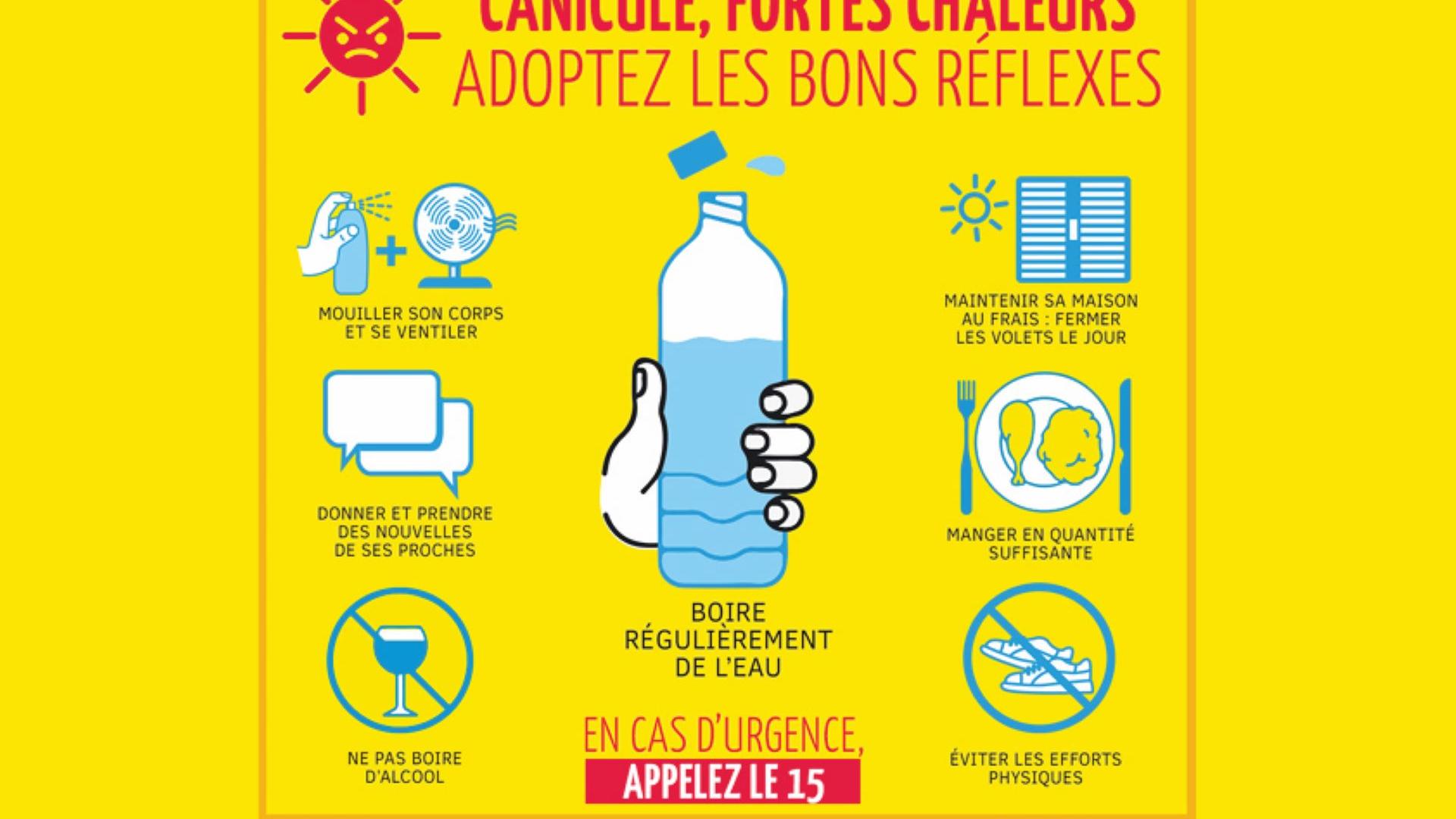 Voir les conseils simples et pratiques à appliquer au cours d’un épisode de fortes chaleurs sur le site du ministère de la Santé et de la prévention.